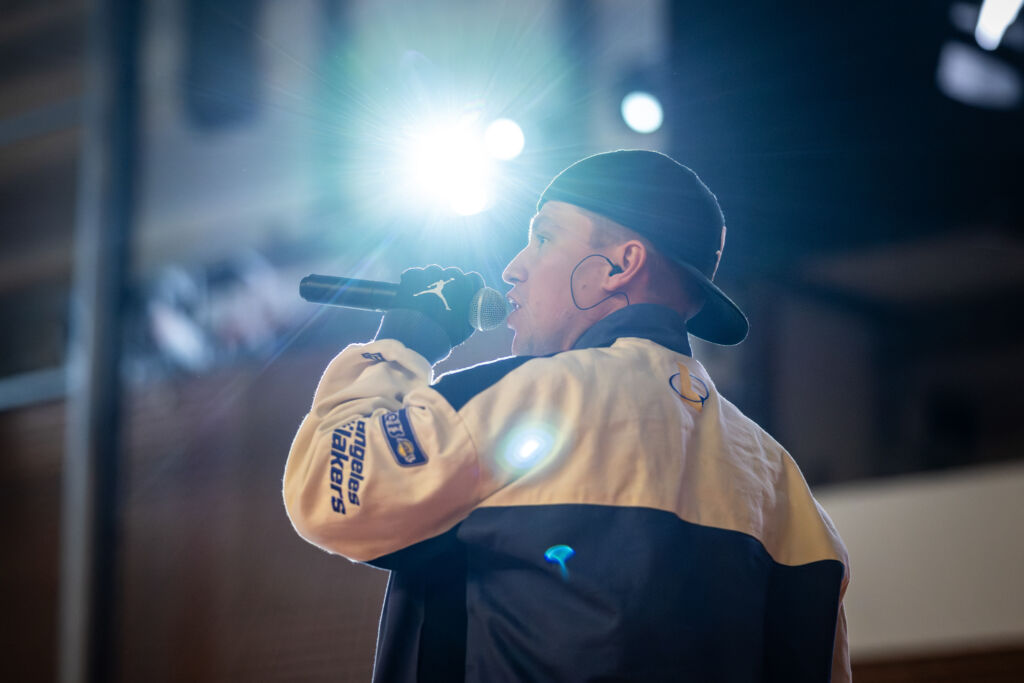 Vrchol večera přišel o poločase — scénu ovládl brněnský rapper Maniak se svou halftime show. Energický výkon rozhýbal celou halu a vykouzlil úsměvy nejen na tvářích studentů. Maniak podpořil derby nejen jako interpret, ale také jako fanoušek brněnské univerzitní scény.