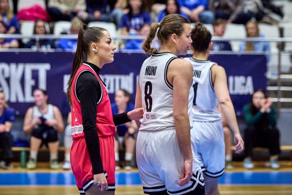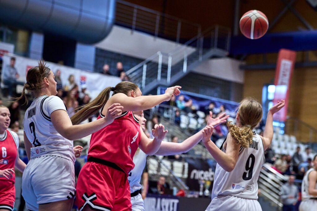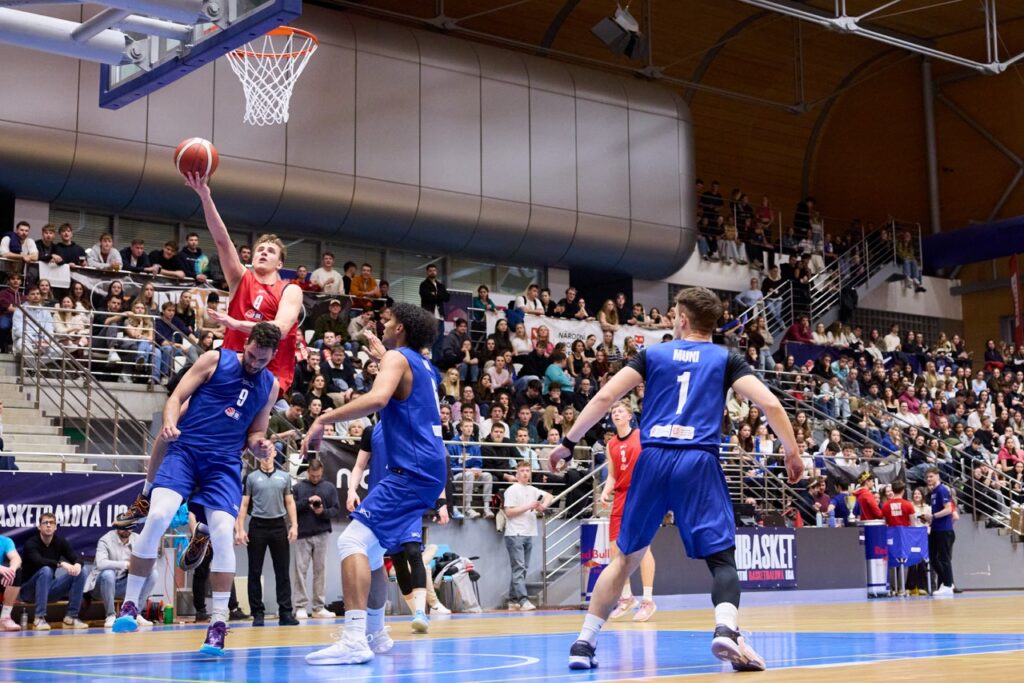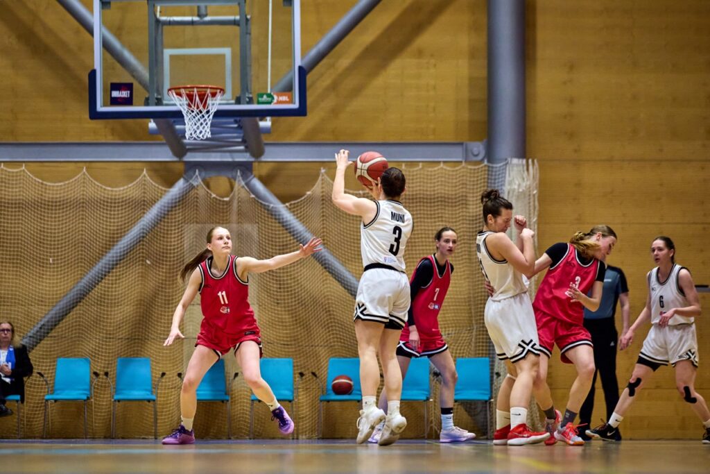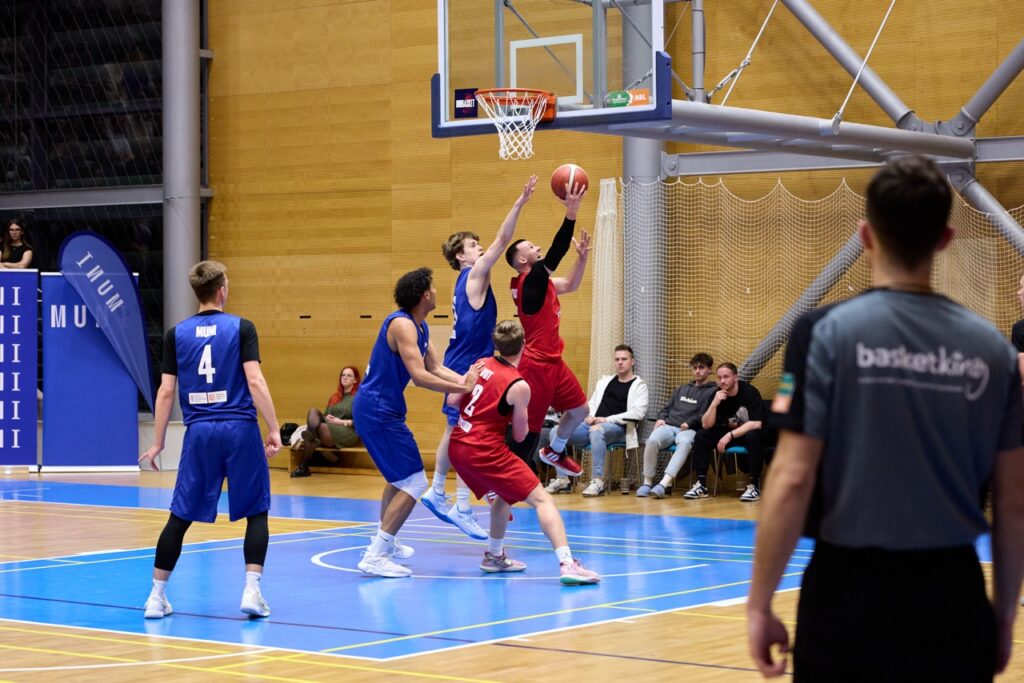 V napínavé koncovce ale nakonec domácí MUNI ukázala pevnější nervy a přesnější ruku. Za ohlušujícího řevu fanoušků dotáhla zápas do vítězného konce a jako bonus prolomila stobodovou hranici. Výhra 100:92 se nerodila vůbec lehce, o to víc ale chutná.