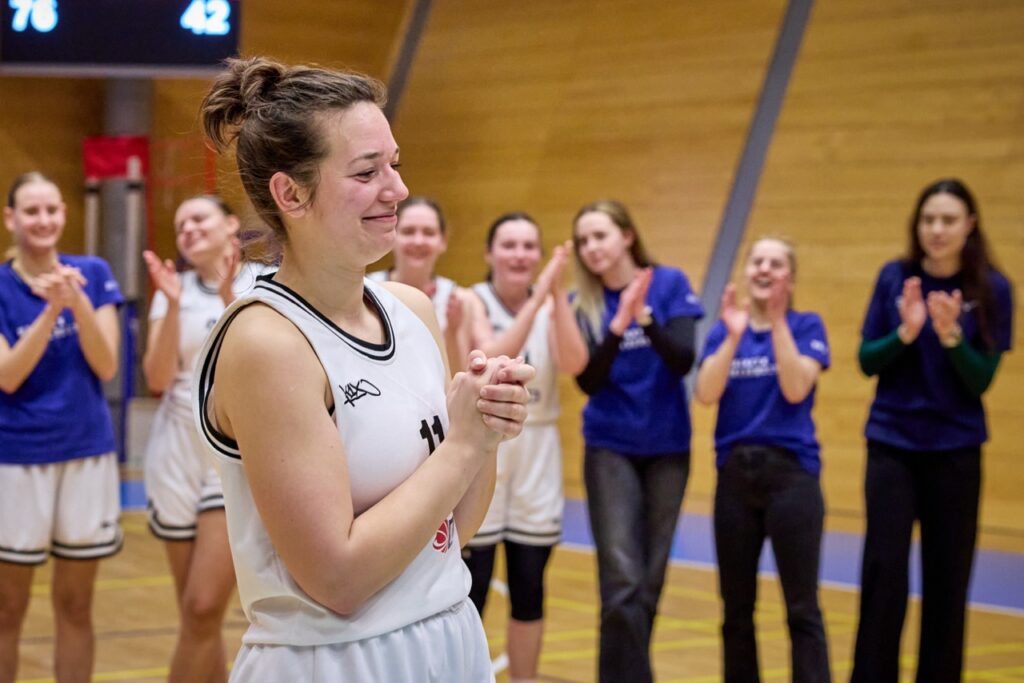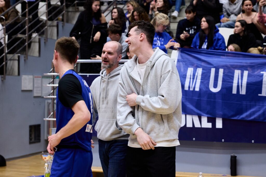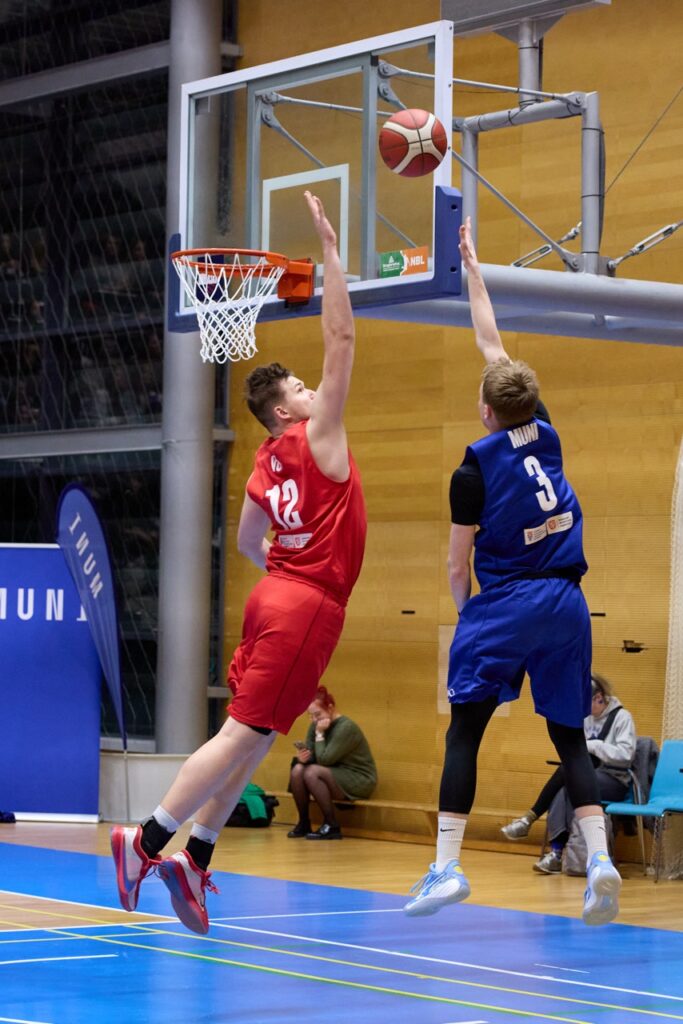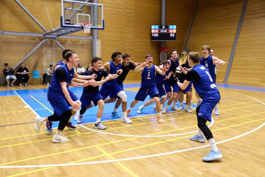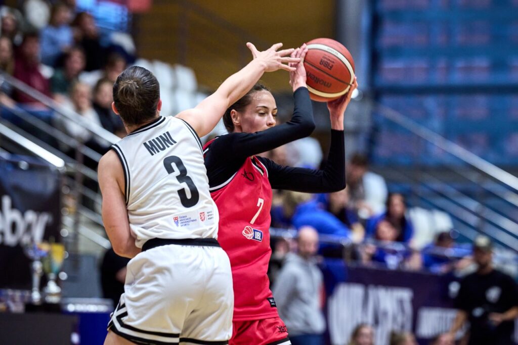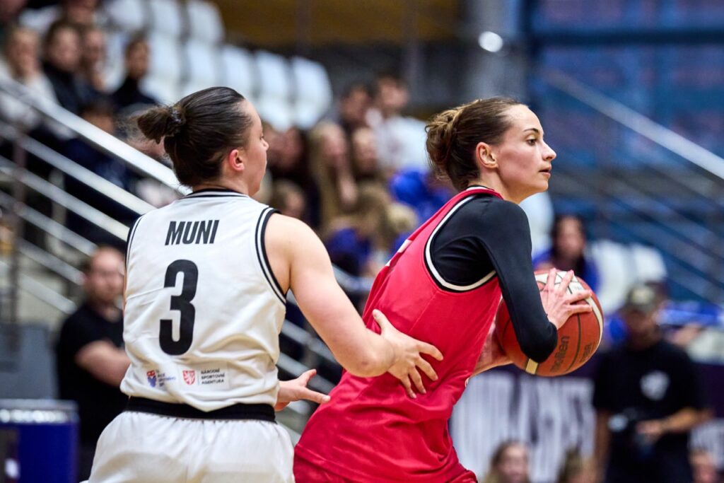 V napínavé koncovce ale nakonec domácí MUNI ukázala pevnější nervy a přesnější ruku. Za ohlušujícího řevu fanoušků dotáhla zápas do vítězného konce a jako bonus prolomila stobodovou hranici. Výhra 100:92 se nerodila vůbec lehce, o to víc ale chutná.