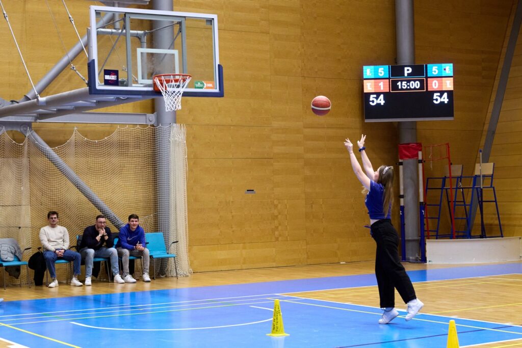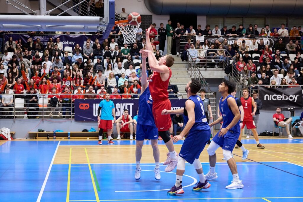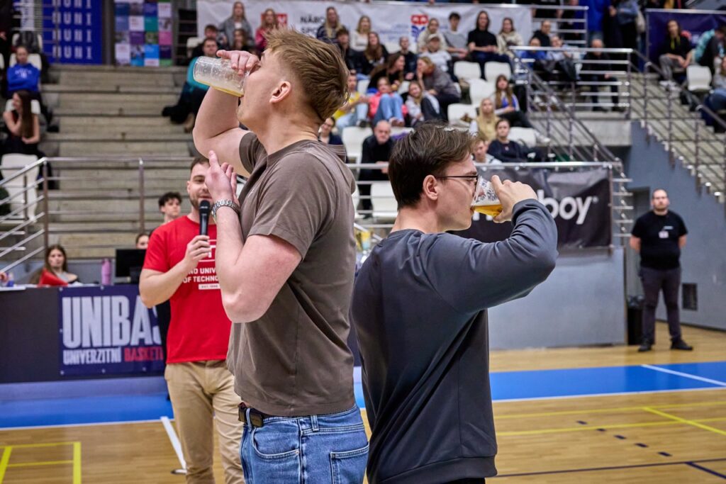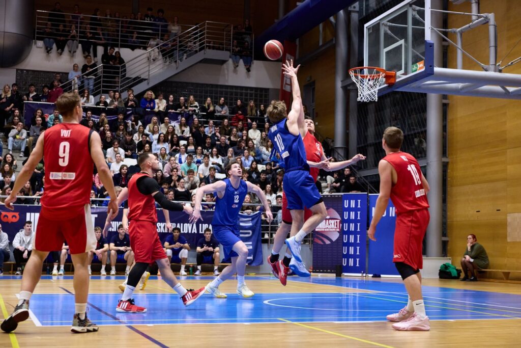 Už od úvodního rozskoku bylo jasné, že tohle jarní kolo Univerzitní basketbalové ligy se zapíše do historie. Barvy obou univerzit zaplavily tribuny a podkres od DJe ZaneCoina nenechal fanoušky ani na chvíli vydechnout. Kdo si potřeboval zchladit hlasivky, zamířil k UniBasket barům – a že bylo fandění potřeba na maximum!