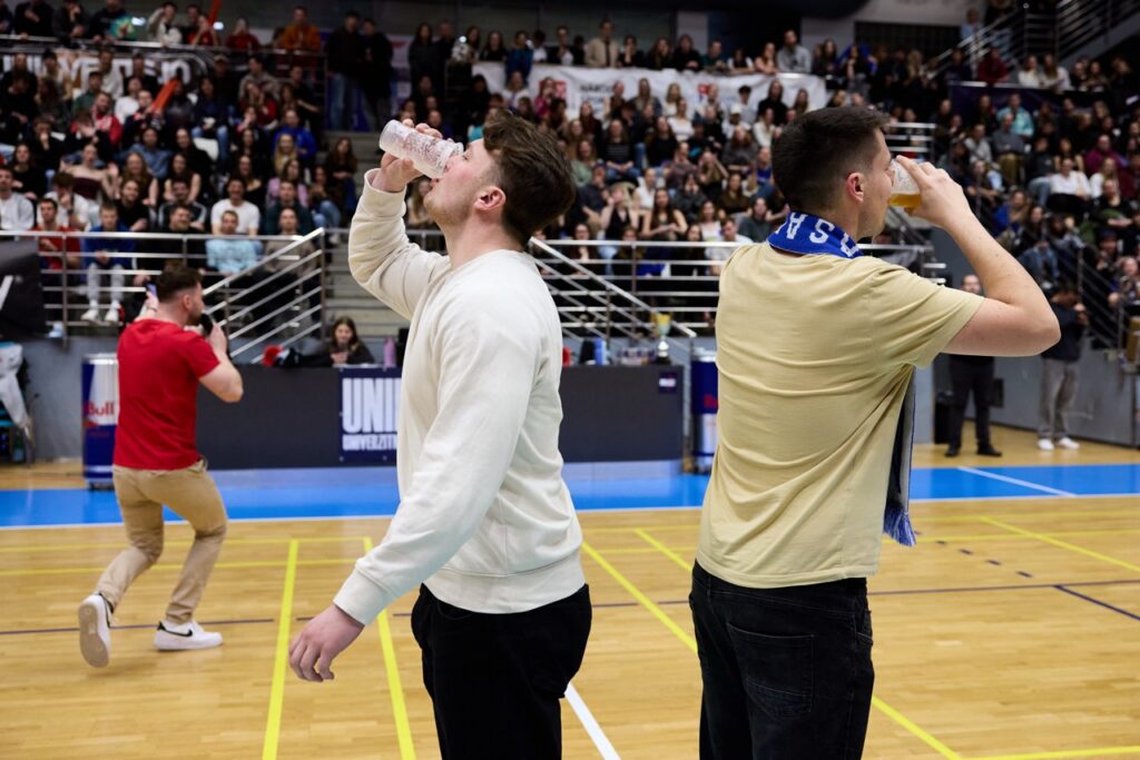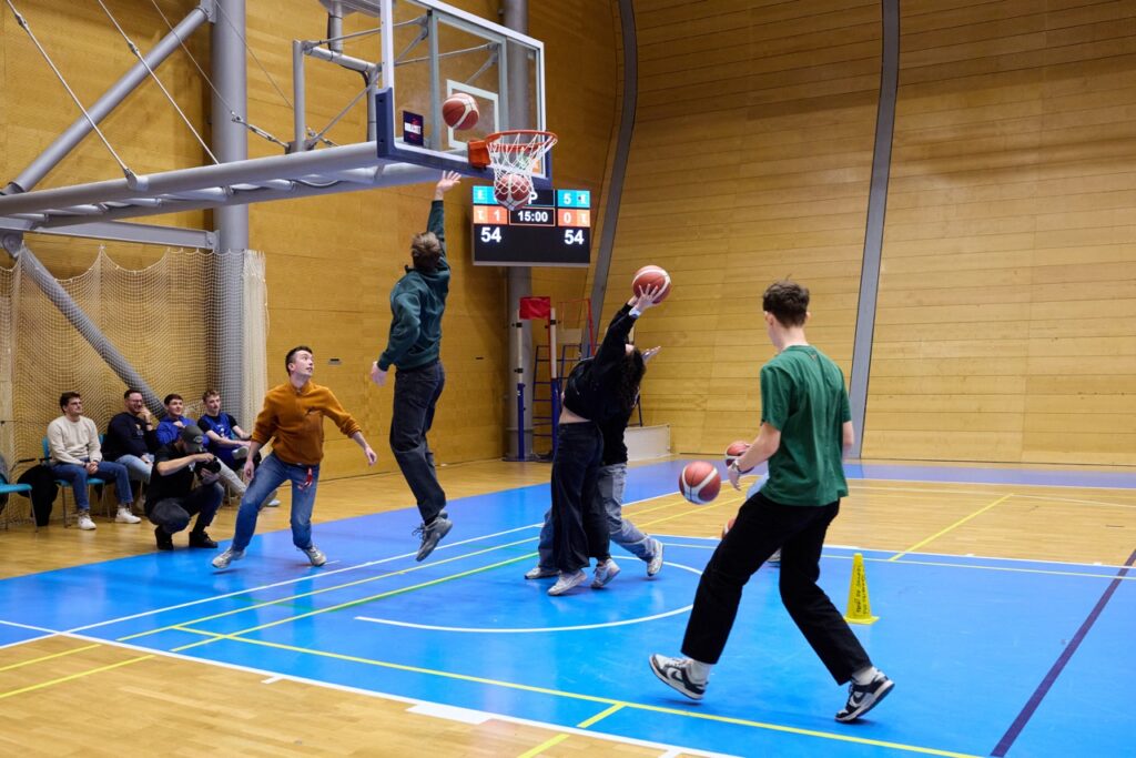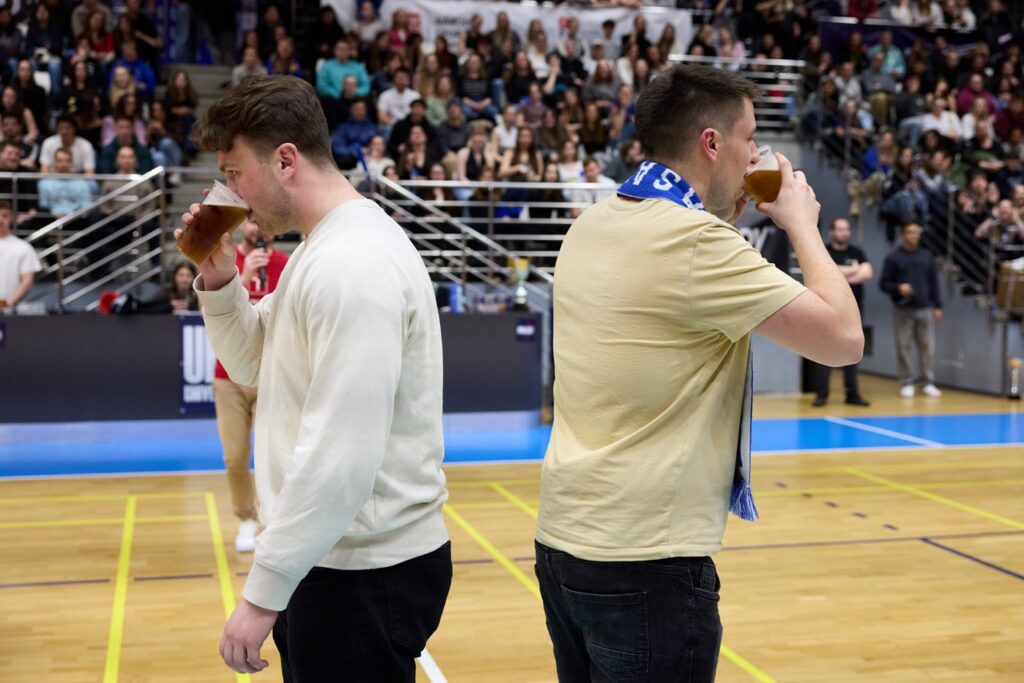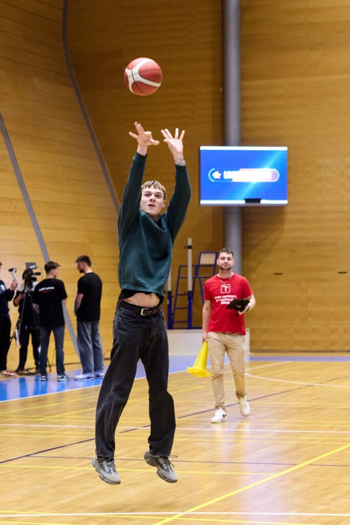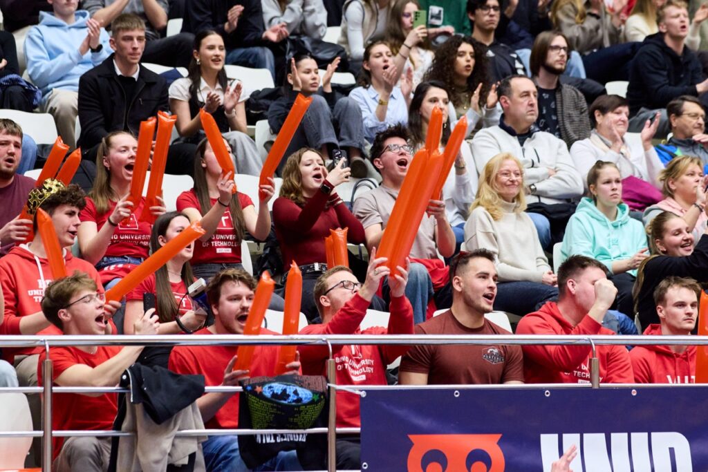 Už od úvodního rozskoku bylo jasné, že tohle jarní kolo Univerzitní basketbalové ligy se zapíše do historie. Barvy obou univerzit zaplavily tribuny a podkres od DJe ZaneCoina nenechal fanoušky ani na chvíli vydechnout. Kdo si potřeboval zchladit hlasivky, zamířil k UniBasket barům – a že bylo fandění potřeba na maximum!