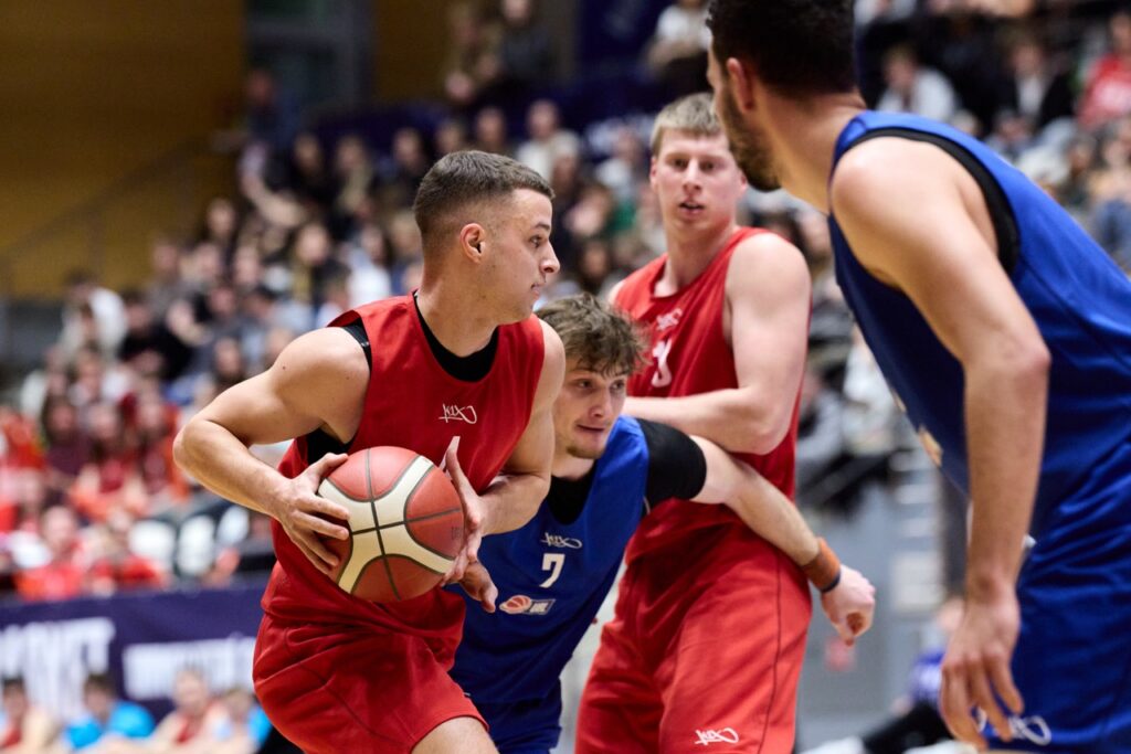 Jestliže ženský zápas byl jasnou záležitostí, mužské klání nabídlo přesně to, proč basketbal milujeme – vyrovnaný boj o každý centimetr palubovky, který se rozhodoval až v samotném závěru. Skóre se přelévalo ze strany na stranu, pod koši se jiskřilo a ani jeden z týmů nechtěl dát městskému rivalovi nic zadar.