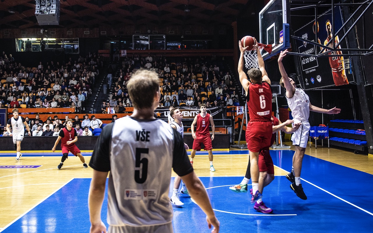 Ve středu 22. října se na Folimance odehrál nezapomenutelný univerzitní duel mezi UK a VŠE. UK si připsala přesvědčivé vítězství 102:57, ale tentokrát nešlo jen o basketbal – návštěvníky čekal bohatý doprovodný program, skvělá atmosféra a zážitky pro všechny generace.